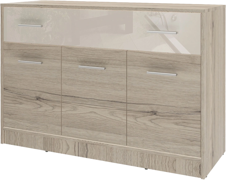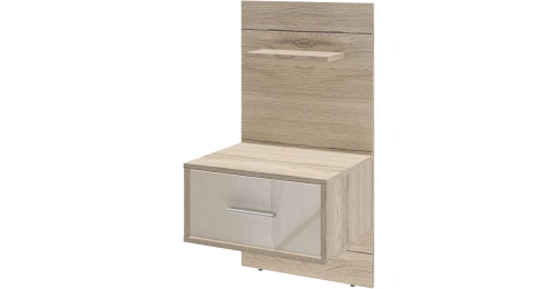 Корпус спальни изготовлен из 16 мм ламинированной древесностружечной плиты цвет –«Дуб Санремо» и «Крем Бежевый». Торцевые поверхности корпуса закромлены кромками ПВХ и ABS. Фасады изготовлены из 16 мм ламинированной древесностружечной плиты цвет –«Дуб Санремо» и «Крем Бежевый». По периметру фасады закромлены кромками ПВХ и ABS. Детали, изготовленные из древесностружечной плиты цвет – «Крем Бежевый», обработаны на лаконаливных машинах имеют высоко глянцевую поверхность .
