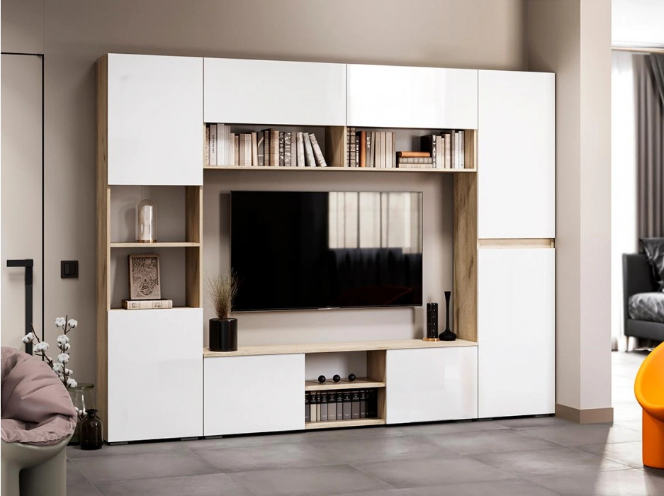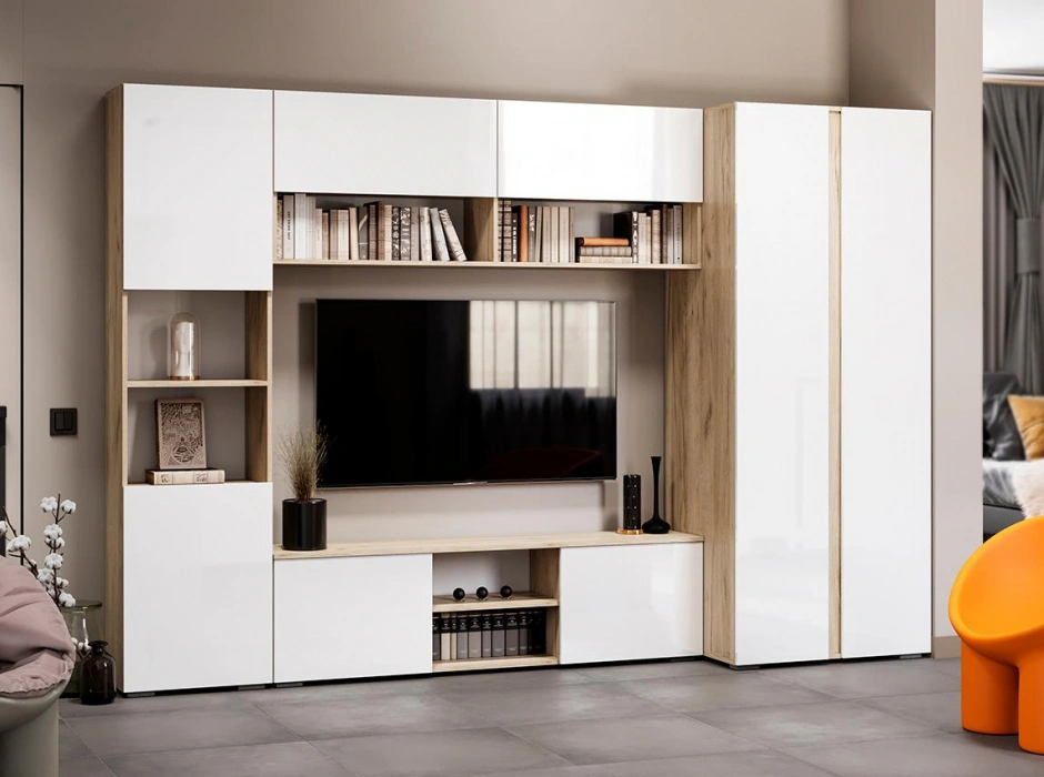 Стеллаж Алетра, ПО-500, дуб крафт серый / глянец белый