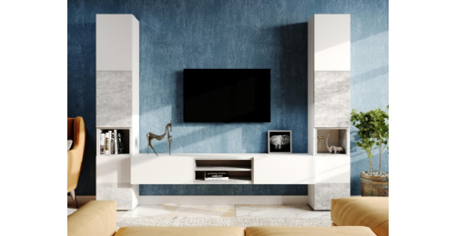 Стеллаж Лонгфорд, белый / бетон светлый