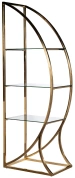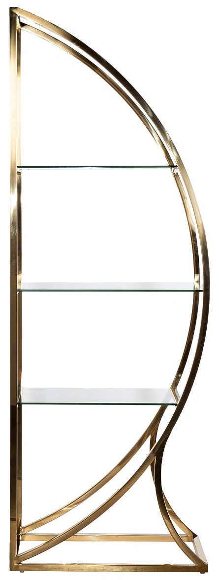 Дизайнерский стеллаж в гостиную "ПОЛУСФЕРА" сочетает в себе креативный стиль и функциональность. Он прекрасно справится с хранением сувениров, посуды, книг, статуэток и прочего домашнего декора. Стеклянные полки станут идеальным местом для ваз, кашпо, фоторамок, шкатулок, памятных вещей. Стильный стеллаж из стали золотого цвета необычной формы украсит интерьер гостиной, спальни, столовой, рабочего кабинета. За счет тандема блестящей стали и прозрачного стекла он добавит обстановке изящества и не перегрузит интерьер. Купить стеллаж с полками можно для украшения дома или квартиры в современном стиле. Он легко сочетается с мебелью в стиле ар-деко, неоклассики, контемпорари.
