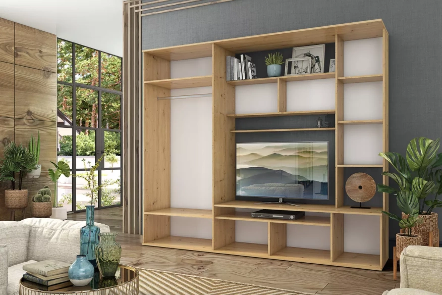 Гостиная Алегро - стенка, которая прекрасно дополнит ваш интерьер. Она предлагает множество мест для хранения вещей, витрину для книг и украшений, а также удобное место для размещения телевизора. Размеры стенки составляют 2340 x 2000 x 515 мм, материал корпуса выполнен из прочного ЛДСП. Фасады также выполнены из ЛДСП и украшены зеркалом. Цвет фасада - Дуб дикий / Белый, а корпуса - Дуб дикий. Место под ТВ имеет размеры 70 х 100 см. В шкафной секции предусмотрена удобная штанга для одежды. Гостиная Алегро не только привлекательна внешним видом и стильным дизайном, но и функциональна, позволяет рационально использовать пространство в вашем доме.