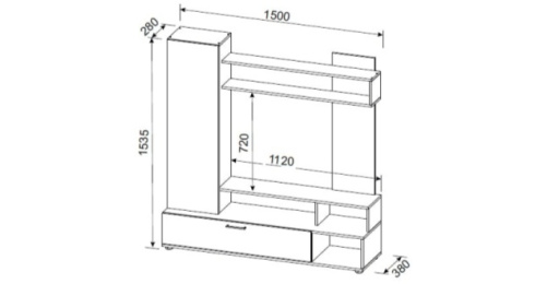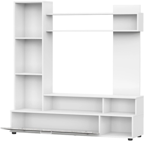 Под нишей расположен 1 закрытый ящик и 3 открытые полки, которые могут стать идеальным местом для хранения вашей коллекции DVD, игр, журналов и других вещей.