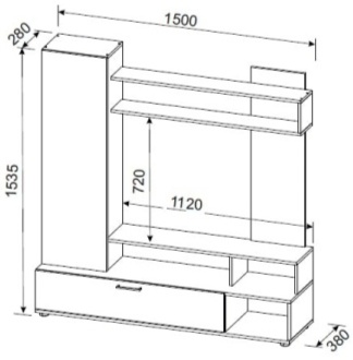 Изготовленная из ЛДСП, эта гостиная состоит из ниши под ТВ размером 111 * 72 см, которая позволяет разместить телевизор до 43 дюймов. Эта ниша является идеальным местом для просмотра ваших любимых фильмов и шоу.