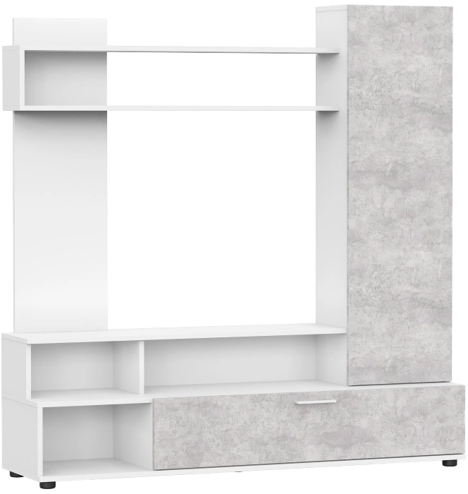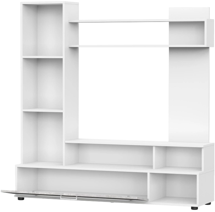 Под нишей расположен 1 закрытый ящик и 3 открытые полки, которые могут стать идеальным местом для хранения вашей коллекции DVD, игр, журналов и других вещей.