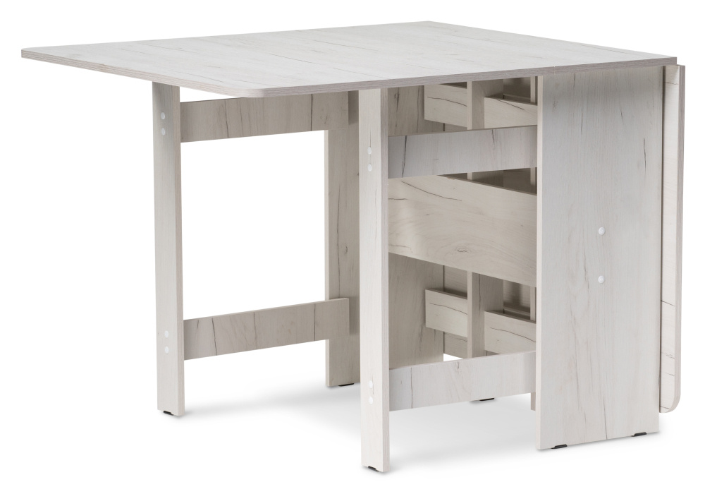 Материал каркаса - ЛДСП; Материал столешницы - ЛДСП; Цвет каркаса - Дуб крафт белый; Цвет столешницы - Дуб крафт белый; Ширина - 85; Высота - 76; Длина стола в разложенном виде - 170; Длина - 35;