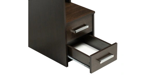 Стол компьютерный Джаз-24 доступен в двух вариантах, и в данном случае важно обратить внимание на расположение полок и ящиков. В данном варианте стола полки и ящики расположены с правой стороны стола, что может быть удобно для тех, кто предпочитает хранить системный блок и принтер справа.