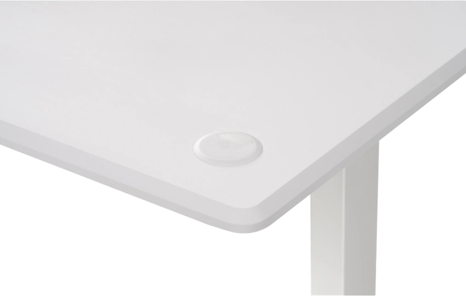 Мощные ножки стола обеспечивают устойчивость и надежность, что делает его идеальным для использования в домашнем офисе или рабочем пространстве. Отверстие для проводов диаметром 6 см в левом верхнем углу столешницы делает его удобным для использования компьютеров и других устройств, упрощая подключение кабелей и устройств.