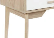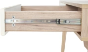 Столешница и корпус изделия выполнены из ЛДСП цвета натурального дуба, фасады ящиков - из МДФ, ручки - массив березы.