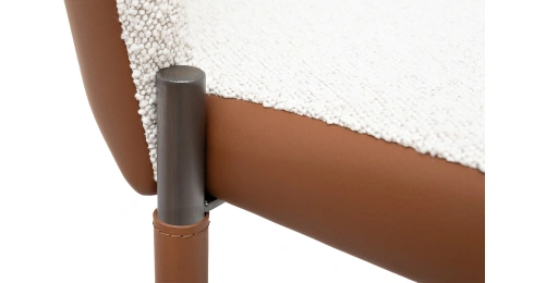 Обеденный мягкий стул кремового цвета с терракотовой контрастной отделкой спинки и ножек будет уместно смотреться в классическом или современном минималистичном интерьере. Практичный материал обивки, высокая спинка, удобная форма – этот дизайнерский стул соответствует актуальным интерьерным трендам и станет выгодной инвестицией в интерьер. Он подойдет как для жилых, так и бизнес-интерьеров. Качественный наполнитель обеспечивает комфортную посадку, а износостойкая обивка из экокожи и фактурной рогожки – простой уход и превосходную эстетику. Оригинальный стул сочетает в себе различные материалы. Каркас металлический, ножки декорированы терракотовой экокожей. Удобное сиденье и внутренняя сторона спинки из светлой рогожки. Габариты сиденья: ширина 49см, глубина 47,5см, высота 47,5см