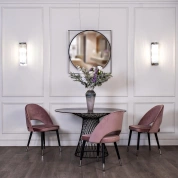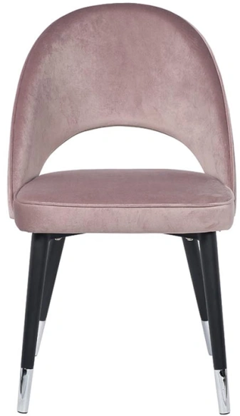 Один из важных элементов, к выбору которого необходимо подойти серьезно – это стул для столовой. Такая мебельная конструкция сама по себе должна быть удобной, практичной и стильной. Если в интерьере столовой преобладает нежные и светлые оттенки, можно рассмотреть вариант покупки пепельно-розового стула с черными ножками. При этом он выглядит благородно. Такой велюровый стул с закругленной спинкой отлично подойдет всем любителям роскоши. Дизайнерский обеденный стул заслуживает быть в столовой ценителя стиля и искусного исполнения мебели. Сиденье: ширина 47, глубина 48, высота 47см.