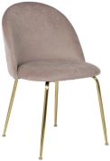 Красивый велюровый стул на металлических ножках идеально подойдет для столовой или кухни, оформленных в традициях современной классики, ар-деко, фьюжн, модерн. Визуальной легкости и изящества конструкции придают тонкие ножки из позолоченного металла, а наполнение из пенополиуретана обеспечивает максимальный комфорт и мягкость. Бежевый велюровый стул лаконичной формы легко вписывается в интерьер и сочетается с другой мебелью. Он устойчивый, практичный, удобный, выполнен в европейском стиле. Купить этот стул для столовой можно вместе с обеденным столом из нашего каталога. Наполнитель пенополиуретан. Размер сиденья: Г43*Ш45*В47см.