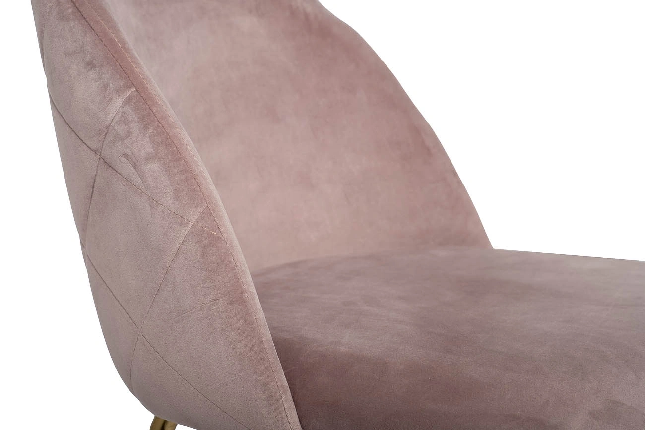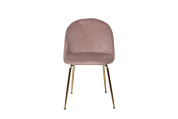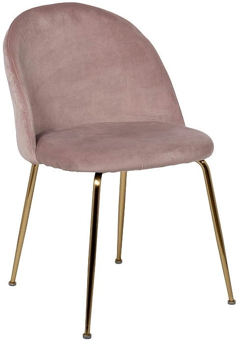 Изящный стул с обивкой из велюра модного пепельно-розового цвета украсит вашу столовую или кухню. Высококачественная износостойкая обивка, прочные металлические ножки цвета матового золота, округлые линии спинки и сиденья делают этот стул практичным и изысканным предметом мебели. Наполнитель пенополиуретан. Размер сиденья: Г43*Ш45*В47см.