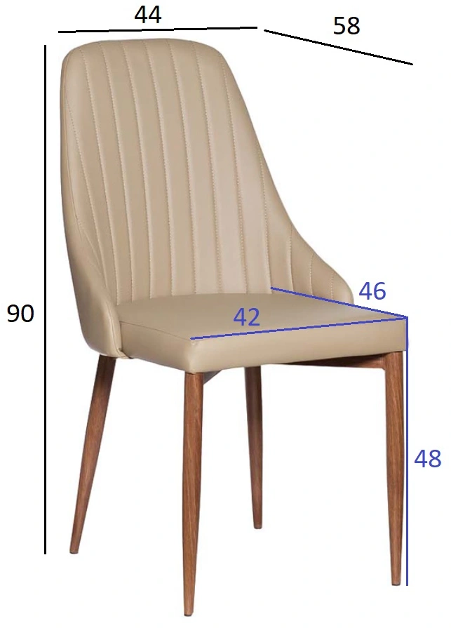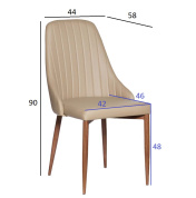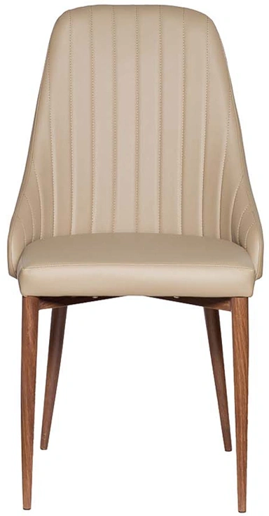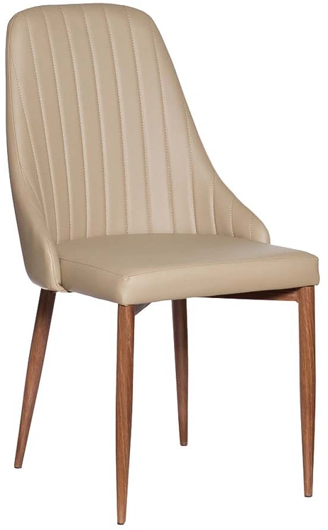 Элегантный стеганый стул прекрасно впишется в современный интерьер столовой или кухни. Лаконичный дизайн и нейтральный оттенок обивки из искусственной кожи делают его универсальным решением для обустройства пространства. Стильный бежевый стул из экокожи максимально комфортный благодаря высокой спинке и мягкому сидению с наполнением из пенополиуретана. Обивка устойчива к износу, легко чистится и эффектно смотрится как в жилом, так и в коммерческом интерьере. Наполнитель пенополиуретан. Размеры сиденья: Г46*Ш42*В48см.