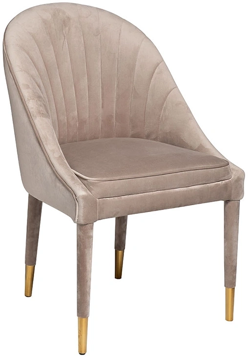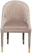 Стильный велюровый стул сочетает в себе аристократизм и удобство. Трендовая простеганная спинка добавляет мебели эстетики, а мягкое наполнение из пенополиуретана обеспечивает максимально возможный комфорт. Дизайнерский стул с полукруглой спинкой стоит на устойчивых ножках с позолоченными наконечниками, что придает ему визуальной легкости и изысканности. Красивый жемчужно-серый стул ар-деко станет отличным выбором для интерьера гостиной, столовой, спальни, кабинета, лаунж-зоны. Он эффектно дополнит и украсит своим присутствием современную обстановку. Размеры сиденья: ширина 47см, глубина 44см, высота 52см. Наполнитель пенополиуретан.