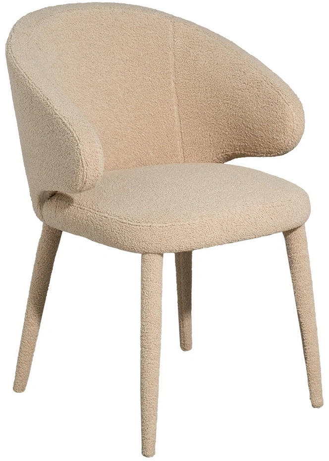 Обеденный стул в нежном бежевом — воплощение утончённой мягкости и современной элегантности. Его округлая спинка с плавными изгибами мягко обрамляет фигуру, а сиденье, обтянутое пушистым текстилем, создаёт ощущение лёгкого объятия — как будто вы садитесь не просто за стол, а в зону уюта. Текстура ткани напоминает шерсть ягнёнка: тактильно приятная, с едва заметным рельефом, она придаёт стулу живой характер. Идеален для кухни, столовой или даже рабочей зоны — где важен функциональный интерьер без потери теплоты. Этот бежевый обеденный стул – элемент дизайна, способный превратить повседневную трапезу в ритуал комфорта. Подойдёт под стили ар-деко, неоклассика или скандинавский фьюжн — там, где ценится дизайнерская мебель с душой.