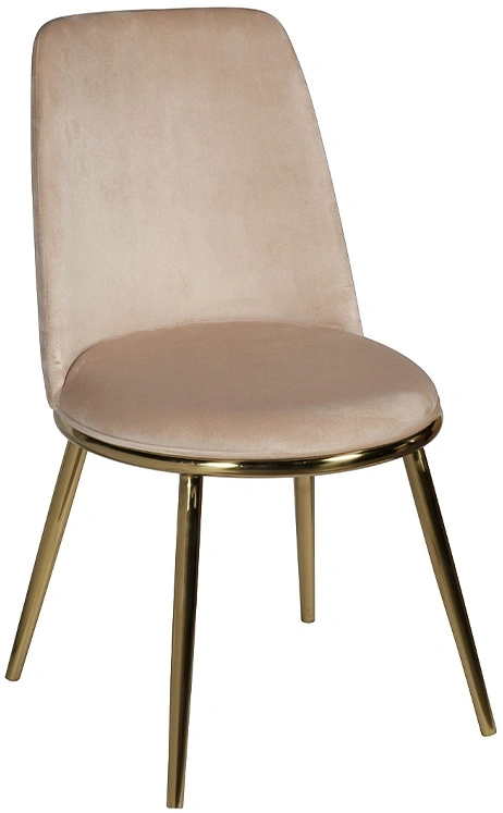 Красивые обеденные стулья - непременный атрибут элегантной столовой или гостиной. Современная интерьерная мода склоняется к легким, прочным и изящным моделям, которые пришли на смену солидным тяжелым стульям, выполненным из массива дерева. Стулья с каркасом и ножками из стали отлично вписываются в ритм современной жизни: они устойчивы, красивы, их легко переставить для рассадки гостей или при уборке комнаты. Полированная сталь золотого цвета, прекрасный износоустойчивый велюр, высокая спинка и удобное круглое сиденье отсылают нас к моделям в стиле ар-деко начала прошлого века. Красивые стулья способны придать интерьеру совершенно иное звучание и сделать ваш дом уютным и гостеприимным! Глубина сиденья - 44см, высота от пола 42см