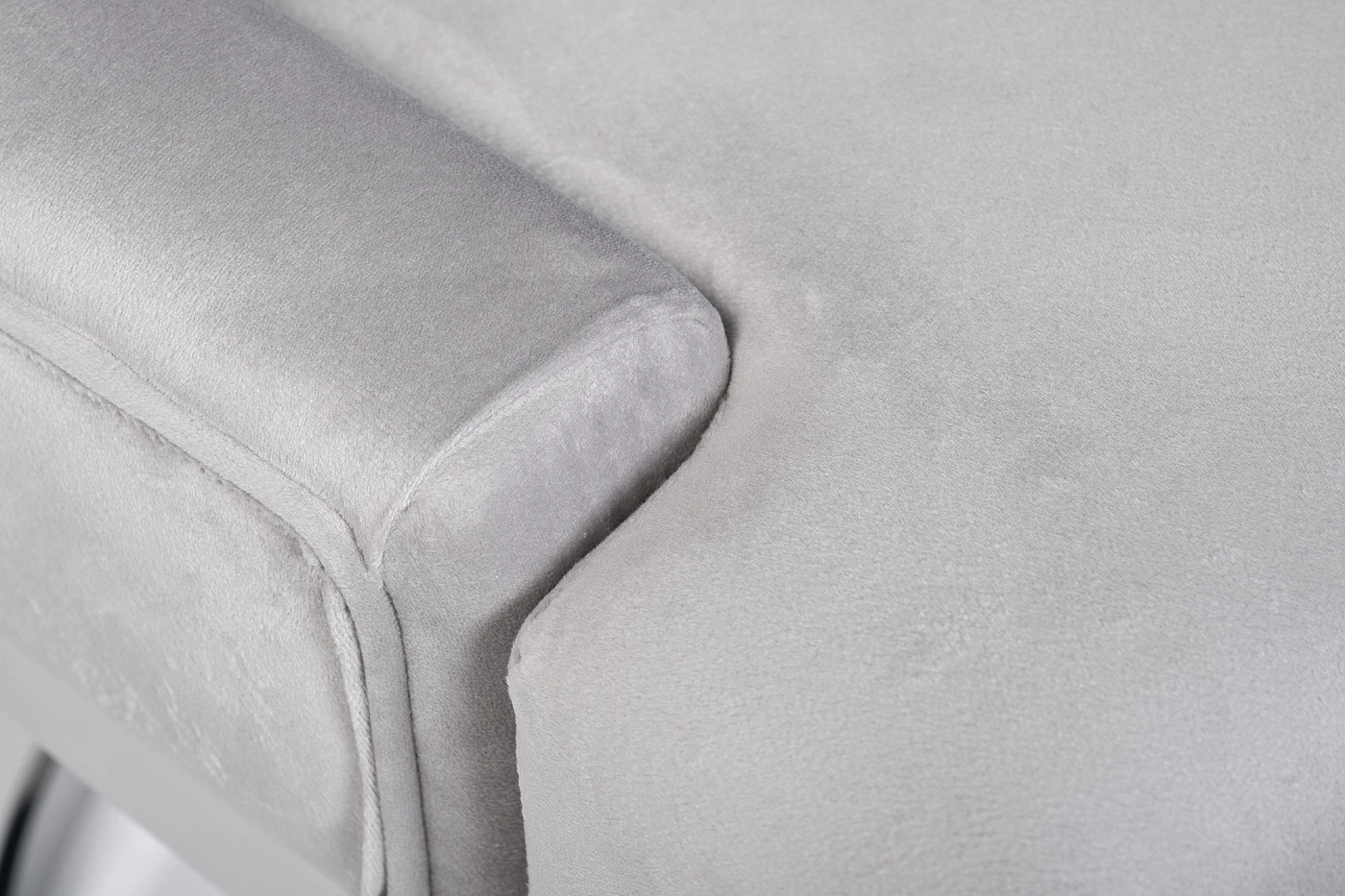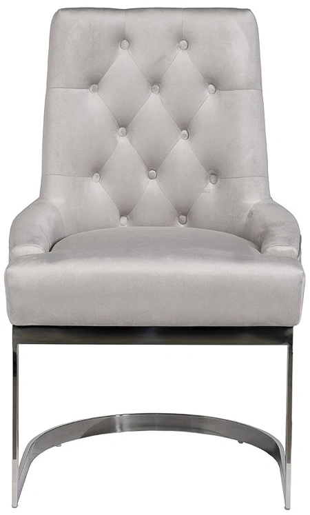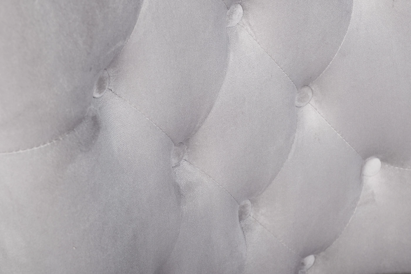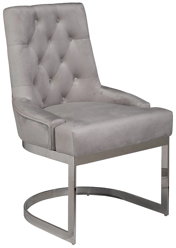 изайнерский стул на металлическом основании выглядит стильно и эффектно за счет каретной стяжки на высокой спинке. Этот мебельный тренд позволяет внести нотку аристократизма в окружающую обстановку. Стильный стеганый стул превосходно вписывается в стилистику ар-деко, неоклассика, модерн, лофт, фьюжн. За счет необычной формы металлического основания он выглядит оригинально и презентабельно. Красивый светло серый стул с обивкой из качественного велюра легко сочетается с мебелью в аналогичной стилистике, хорошо впишется в светлую или темную цветовую гамму интерьера. Высота сиденья 48см, наполнитель пенополиуретан.