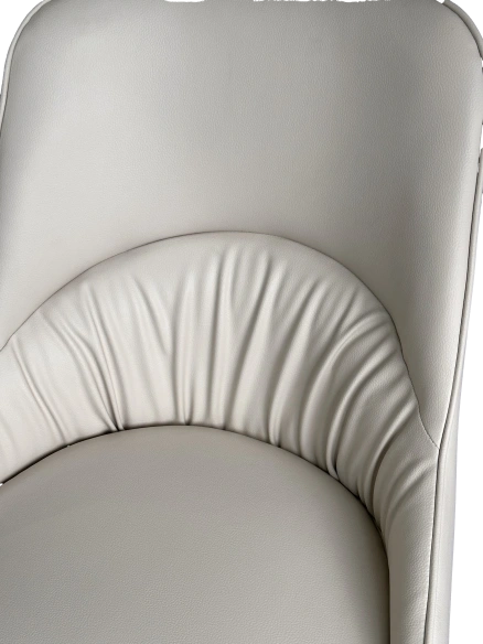 Сиденье и спинка в обивке из экокожи молочного цвета.