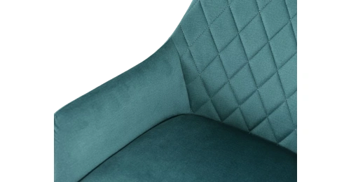 Стул для кухни «Ardeko» с подлокотниками, в обивке из микровелюра Монолит Эмеральд, опоры металлические черного цвета. Изготовлен на металлическом, цельносварном каркасе, опоры, окрашенные порошковой краской, выполнены из трубы d38*1,5мм. При производстве используется только высоко-качественная сталь.