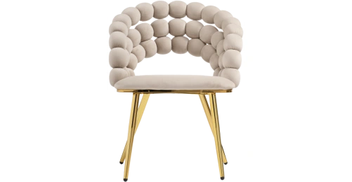 Материал каркаса - Металл; Материал сиденья - Велюр; Материал ножек - Металл; Материал обивки - Велюр; Цвет каркаса - Золотой; Цвет сиденья - Бежевый; Цвет ножек - Золотой; Цвет обивки - Бежевый; Ширина - 61; Глубина - 60; Высота - 81; Ширина сиденья - 42; Глубина сиденья - 49; Высота сиденья - 47;