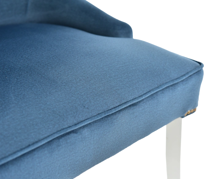 Деревянный стул «Боска», в крашении Тон 9 (Эмаль белая) в обивке из микровелюра Монолит Аквамарин.