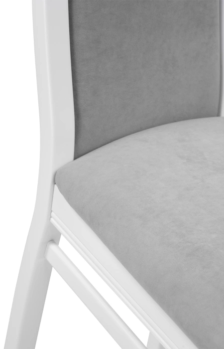 Материал каркаса - Массив бука; Материал сиденья - Велюр; Материал ножек - Массив бука; Материал обивки - Велюр; Цвет каркаса - Белый; Цвет сиденья - Серый; Цвет ножек - Белый; Цвет обивки - Серый; Ширина - 45; Глубина - 54; Высота - 100; Ширина сиденья - 40; Глубина сиденья - 40; Высота сиденья - 49;