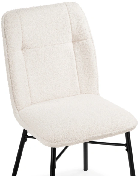 Материал каркаса - Металл; Материал сиденья - Ткань Букле; Материал ножек - Металл; Материал обивки - Ткань Букле; Цвет каркаса - Черный; Цвет сиденья - Белый; Цвет ножек - Черный; Цвет обивки - Белый; Ширина - 46; Глубина - 59; Высота - 87; Ширина сиденья - 44; Глубина сиденья - 40; Высота сиденья - 47;