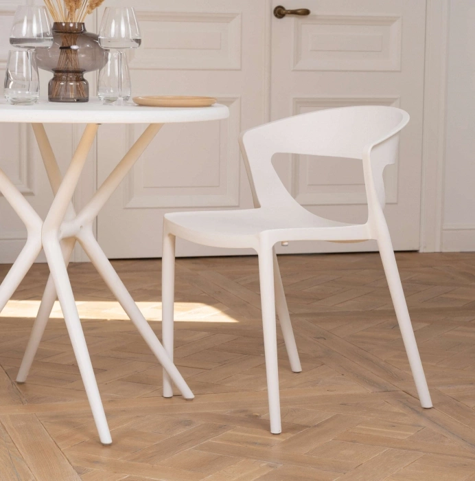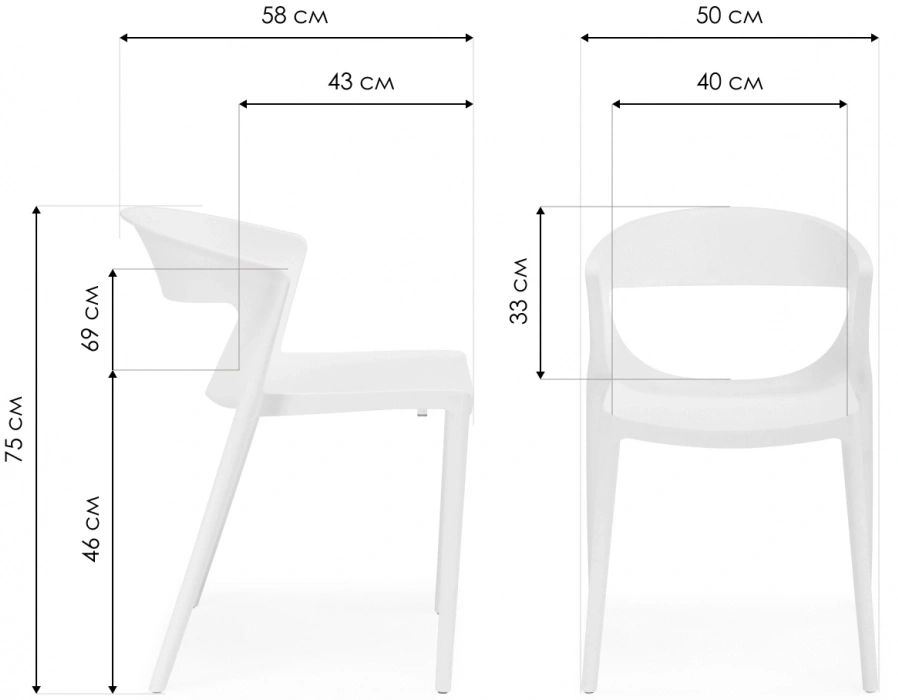 Материал каркаса - Пластик; Материал сиденья - Пластик; Материал ножек - Пластик; Цвет каркаса - Белый; Цвет сиденья - Белый; Цвет ножек - Белый; Ширина - 50; Глубина - 58; Высота - 75; Ширина сиденья - 40; Глубина сиденья - 43; Высота сиденья - 46;