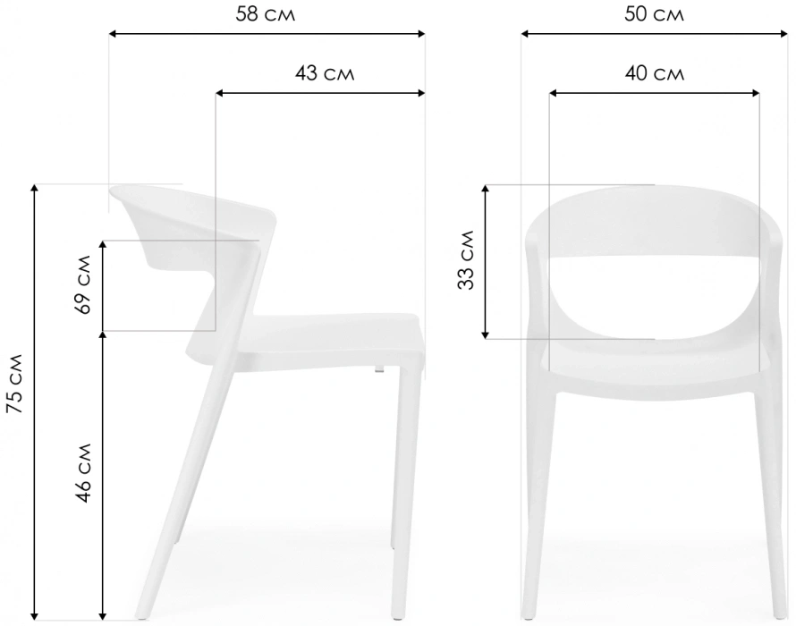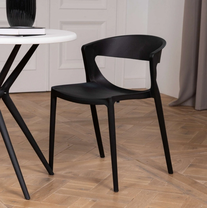 Материал каркаса - Пластик; Материал сиденья - Пластик; Материал ножек - Пластик; Цвет каркаса - Черный; Цвет сиденья - Черный; Цвет ножек - Черный; Ширина - 50; Глубина - 58; Высота - 75; Ширина сиденья - 40; Глубина сиденья - 43; Высота сиденья - 46;