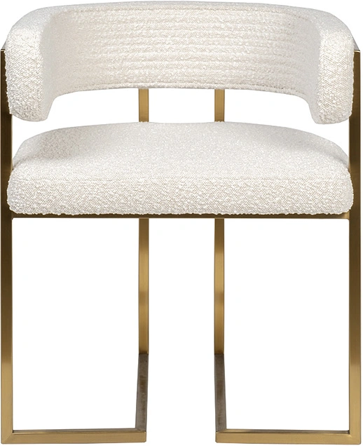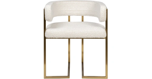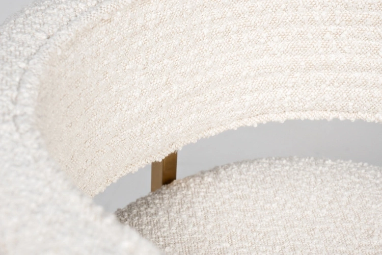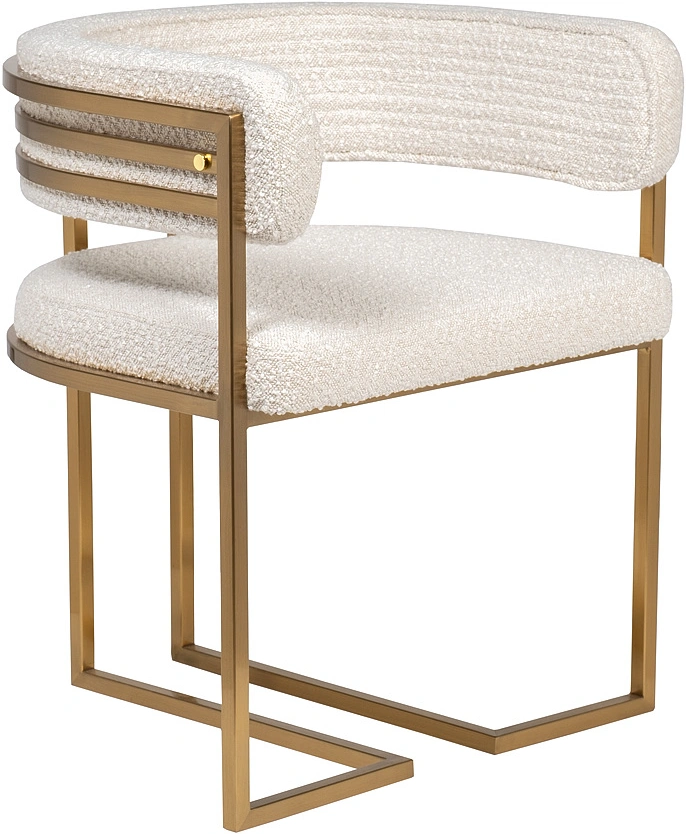 Стул с обивкой из букле в бежевом цвете создан для тех, кто ценит тактильный комфорт и актуальный дизайн. Его мягкая, фактурная поверхность делает посадку особенно уютной, а округлая спинка, переходящая в подлокотники, обеспечивают расслабленную поддержку. Металлическое основание с золотым покрытием делает акцент на элитарности мебели. Этот предмет мебели гармонично впишется в обеденную зону, зону отдыха или стильный рабочий кабинет, добавляя интерьеру тепло и игру текстур. Стул букле бежевый — это про комфорт, который хочется ощутить, и стиль, который легко вписать в интерьер.