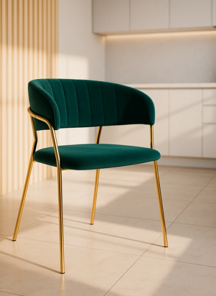 Стул Kamelia - это стильный и изысканный стул, который подойдет для различных интерьеров благодаря своему элегантному дизайну. Каркас стула выполнен из гальванизированного металла, который обеспечивает долговечность и устойчивость к коррозии. Этот материал также добавляет стулу изысканный золотой оттенок, который выглядит очень роскошно. Сиденье и спинка стула покрыты износостойким велюром, который приятен на ощупь и легко чистится. Дизайн стула Kamelia сочетает в себе элегантность и комфорт, что делает его идеальным для использования в качестве стула для обеденного стола или для дополнения интерьера кабинета или гостиной.