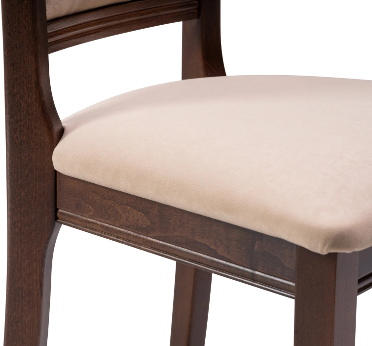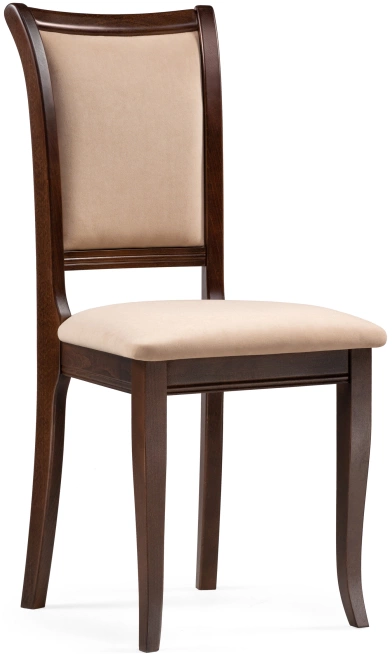 Материал каркаса - Массив бука; Материал сиденья - Велюр; Материал ножек - Массив бука; Материал обивки - Велюр; Цвет каркаса - Орех; Цвет сиденья - Бежевый; Цвет ножек - Орех; Цвет обивки - Бежевый; Ширина - 45; Глубина - 55; Высота - 94; Ширина сиденья - 40; Глубина сиденья - 42; Высота сиденья - 49;
