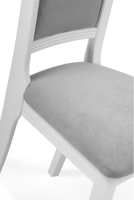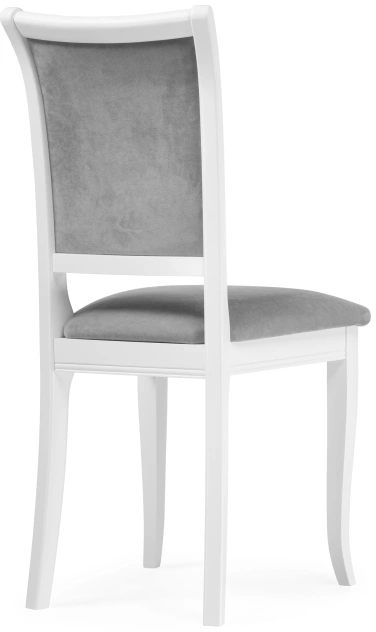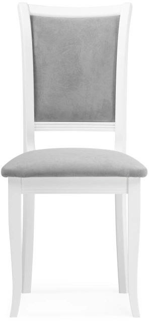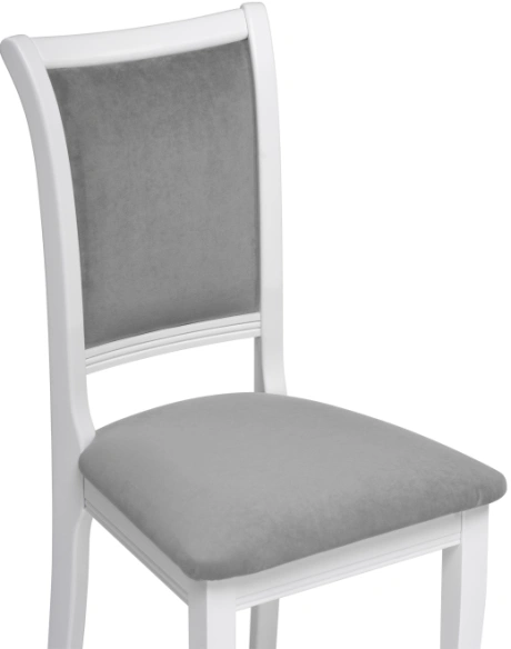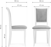 Материал каркаса - Массив бука; Материал сиденья - Велюр; Материал ножек - Массив бука; Материал обивки - Велюр; Цвет каркаса - Белый; Цвет сиденья - Серый; Цвет ножек - Белый; Цвет обивки - Серый; Ширина - 46; Глубина - 52; Высота - 95; Ширина сиденья - 41; Глубина сиденья - 41; Высота сиденья - 49;