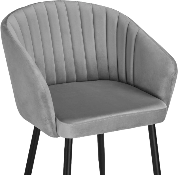 Материал каркаса - Металл; Материал сиденья - Велюр; Материал ножек - Металл; Материал обивки - Велюр; Цвет каркаса - Черный; Цвет сиденья - Серый; Цвет ножек - Черный; Цвет обивки - Серый; Ширина - 64; Глубина - 64; Высота - 78; Ширина сиденья - 43; Глубина сиденья - 44; Высота сиденья - 50;