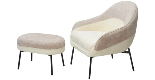 Обивка - шенилл. Нижняя части кресла - белый, верхняя - бежевый.
