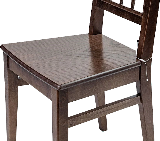 Деревянный стул «Кристиан» с жестким сиденьем и жесткой спинкой, в крашении Тон 7 (Орех темный). Материал изготовления каркаса стула: массив березы с окраской различных тонов, в том числе и в сочетании с патиной (искусственно состаренное покрытие дерева). Варианты модели стула предусматривают изготовление из различных тканей: шелка, экокожи и рогожки.