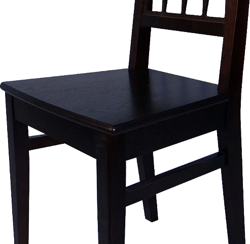 Деревянный стул «Кристиан» с жестким сиденьем и жесткой спинкой, в крашении Тон 8 (Венге натуральный). Материал изготовления каркаса стула: массив березы с окраской различных тонов, в том числе и в сочетании с патиной (искусственно состаренное покрытие дерева). Варианты модели стула предусматривают изготовление из различных тканей: шелка, экокожи и рогожки.