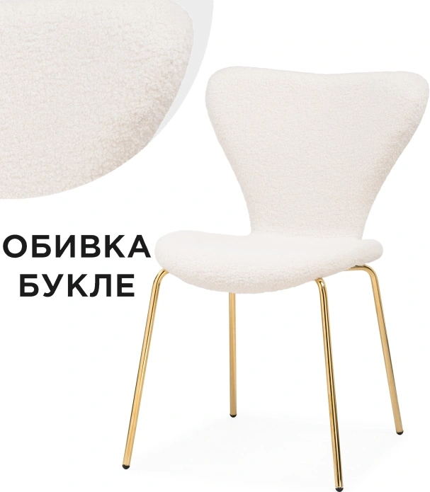 Сочетание белого и золотого оттенков в ткани букле придаёт стулу неповторимый шарм и элегантность. Этот стул станет не только местом для отдыха и приёма пищи, но и ярким акцентом, который оживит вашу кухню.