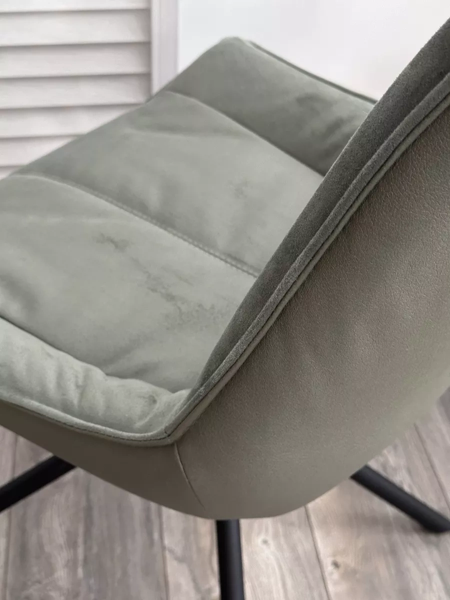 Комбинированная обивка: посадочная часть - искусственная замша зеленого цвета, задняя часть - экокожа зеленого цвета.
