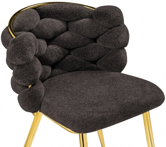 Материал каркаса - Металл; Материал сиденья - Ткань; Материал ножек - Металл; Материал обивки - Ткань; Цвет каркаса - Золотой; Цвет сиденья - Серый; Цвет ножек - Золотой; Цвет обивки - Серый; Ширина - 64; Глубина - 70; Высота - 77; Ширина сиденья - 52; Глубина сиденья - 48; Высота сиденья - 49;