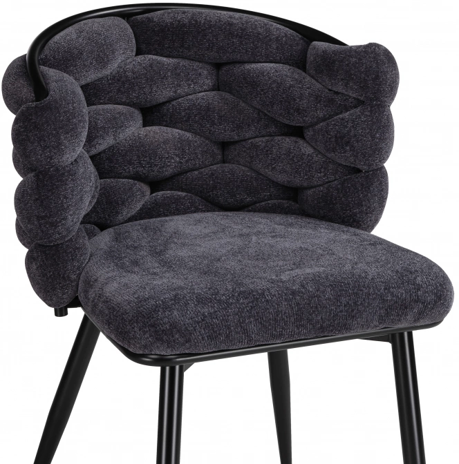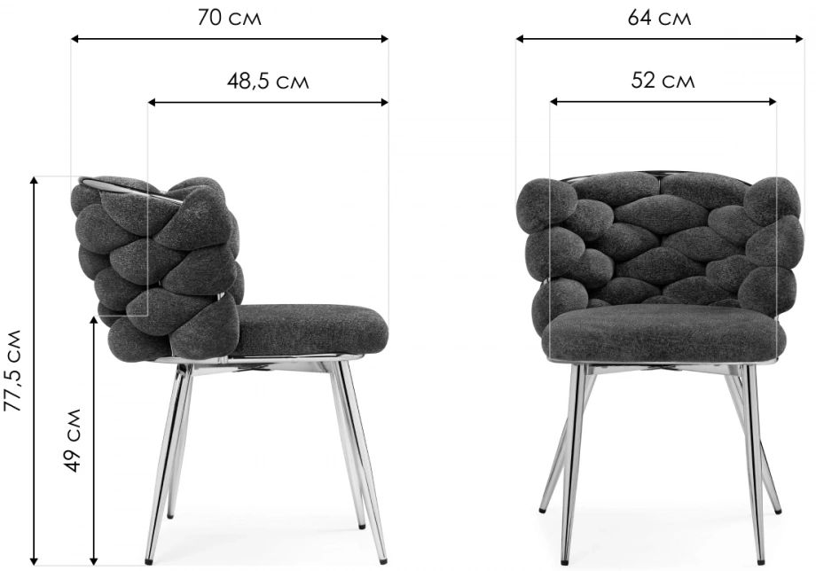 Материал каркаса - Металл; Материал сиденья - Ткань; Материал ножек - Металл; Материал обивки - Ткань; Цвет каркаса - Черный; Цвет сиденья - Серый; Цвет ножек - Черный; Цвет обивки - Серый; Ширина - 64; Глубина - 70; Высота - 77; Ширина сиденья - 52; Глубина сиденья - 48; Высота сиденья - 49;
