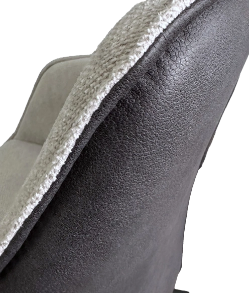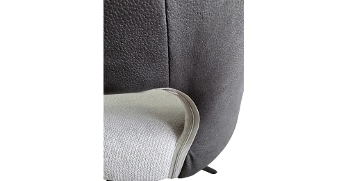 Обивка сиденья - ткань светло-серого цвета, подлокотники с тыльной стороны - экокожа темно-серого цвета.