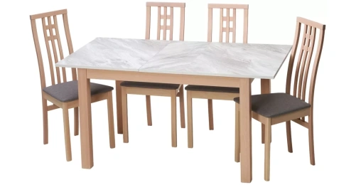 Каркас стула выполнен из массива бука, сиденье обито тканью.