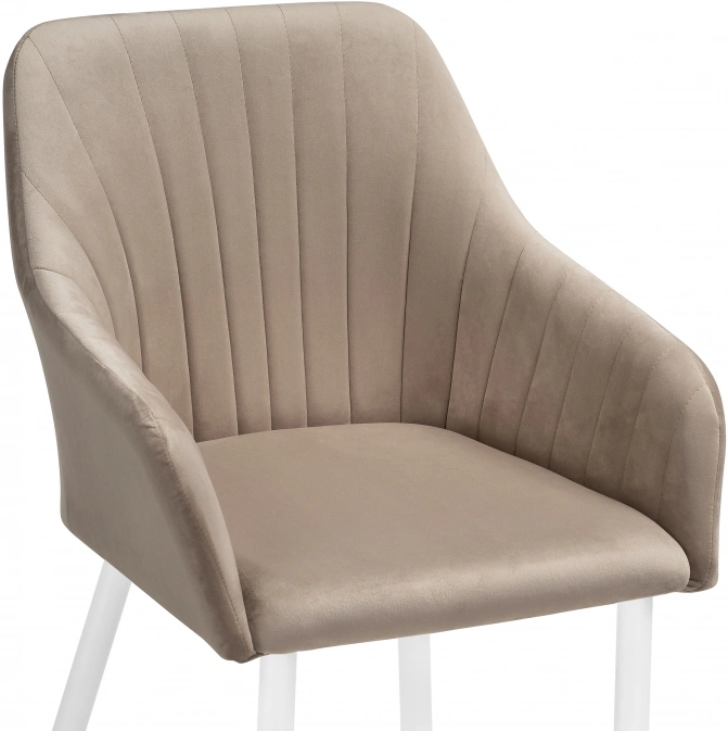 Высота подлокотников: 64 см. Материал каркаса - Металл; Материал сиденья - Велюр; Материал ножек - Металл; Материал обивки - Велюр; Цвет каркаса - Белый; Цвет сиденья - Бежевый; Цвет ножек - Белый; Цвет обивки - Серый; Ширина - 54; Глубина - 53; Высота - 82; Ширина сиденья - 41; Глубина сиденья - 43; Высота сиденья - 49;