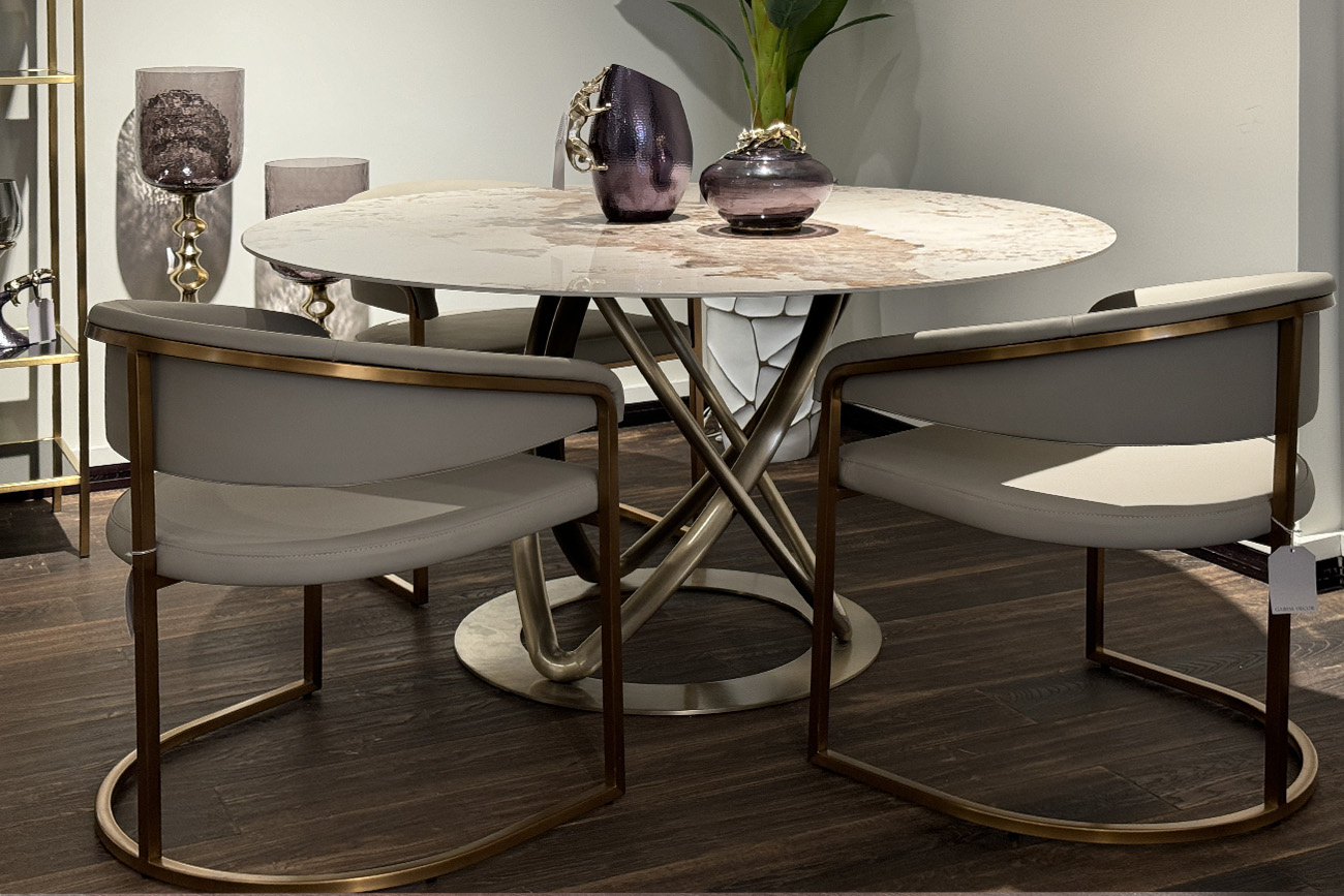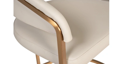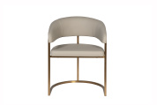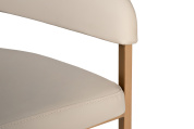 Современные интерьеры стремятся к балансу форм и назначения мебели. Этот обеденный стул из искусственной кожи идеально вписывается в концепцию эстетики минимализма. Лаконичные формы, сочетание искусственной кожи с металлическим основанием в матовом золотом оттенке делают его актуальным выбором для интерьеров в стиле современный минимализм, mid-century, modern и неоарт-деко. Экокожа придает стулу элегантную тактильность, но при этом остается практичной в эксплуатации. Конструкция с округлой спинкой создает ощущение защищенности и уюта, а мягкое сиденье обеспечивает комфортную посадку. Этот стул станет гармоничным элементом обеденной зоны, подчёркивая внимание к деталям и трендовым материалам.
