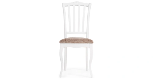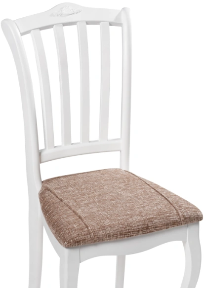 Материал каркаса - Массив березы; Материал сиденья - Ткань; Материал ножек - Массив березы; Материал обивки - Ткань; Цвет каркаса - Белый; Цвет сиденья - Коричневый; Цвет ножек - Белый; Цвет обивки - Коричневый; Ширина - 43; Глубина - 55; Высота - 97; Ширина сиденья - 40; Глубина сиденья - 42; Высота сиденья - 46;