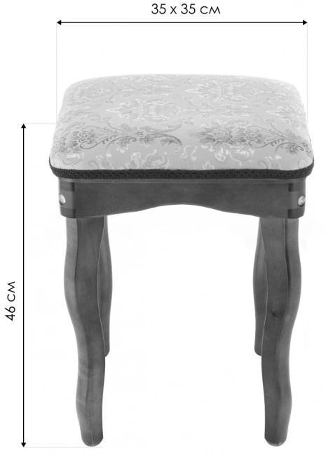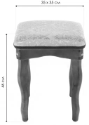 Материал каркаса - Массив березы; Материал сиденья - Ткань; Материал ножек - Массив березы; Материал обивки - Ткань; Ширина - 35; Глубина - 35; Высота - 46;