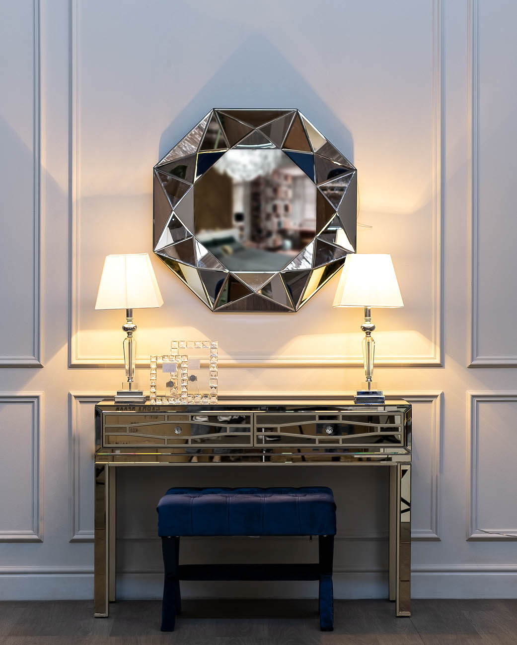 При оформлении интерьера дома стоит отдавать предпочтение компактным, а не громоздким предметам. Данная зеркальная консоль необычайно удобна в применении. Она не займет много места, вы без труда разместите ее в комнате. Выполнение консоли с ящиками делает ее еще более функциональной. Теперь у вас будет дополнительное место для хранения разных нужных мелочей. Очень удачным является решение купить консоль в спальню. Она может одновременно служить миниатюрным туалетным столиком и подставкой для всевозможных предметов. Вы сможете держать необходимые аксессуары под рукой на видном месте.