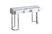 Нежная белая консоль в стиле арт-деко станет прекрасным дополнением современного интерьера гостиной или спальни. Оригинальный дизайн позволяет хозяевам дома заявить о своем статусе. Стильная консоль с 2 ящиками отличается элегантностью, особой эстетикой и эргономичностью. Особого шика мебели придает стеклянная столешница и изящные, необычные ножки из нержавеющей стали в хромированной отделке. Закажите консоль в спальню или гостиную – подчеркните индивидуальность вашего интерьера за счет уникальной модели, разработанной дизайнерами Garda Decor.