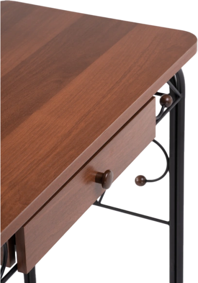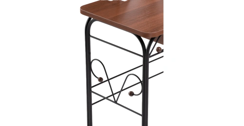 Материал каркаса - Металл; Материал ножек - Металл; Материал столешницы - ЛДСП; Материал подстолья - ЛДСП; Цвет каркаса - Черный; Цвет ножек - Черный; Цвет столешницы - Орех; Цвет подстолья - Орех; Ширина - 86; Глубина - 49; Высота - 153;